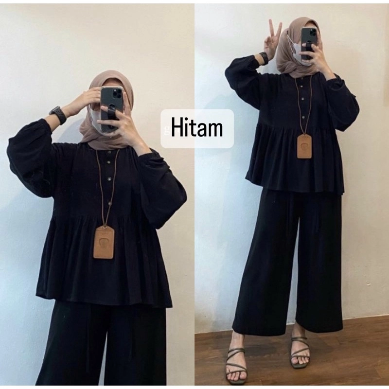 MEQA DAILY - Arina Blouse Peplum Airflow Crinkle ALLSIZE Hitam