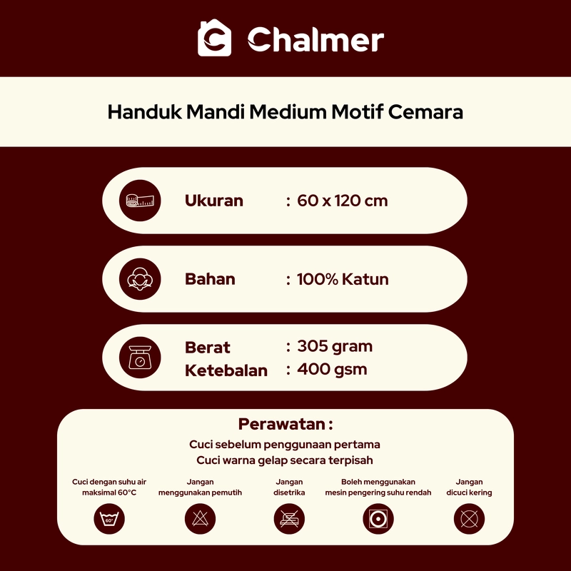 Chalmer - Handuk Mandi Chalmer 60 x 120 cm Motif Cemara Handuk Medium Travel Anak Kepala Rambut