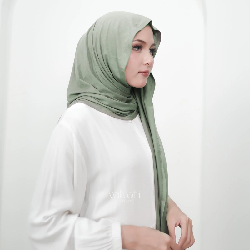 Sakura Baru X Willofi - Pashmina Instant Belvina Inner Menutup Leher Rayon Anti UV & Anti Bakter Pa All Size Pistacio Green