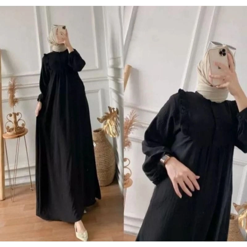 MEQA DAILY - MEGA DAILY - Gamis Wanita Moana Dress Bahan Hyget Super Hitam
