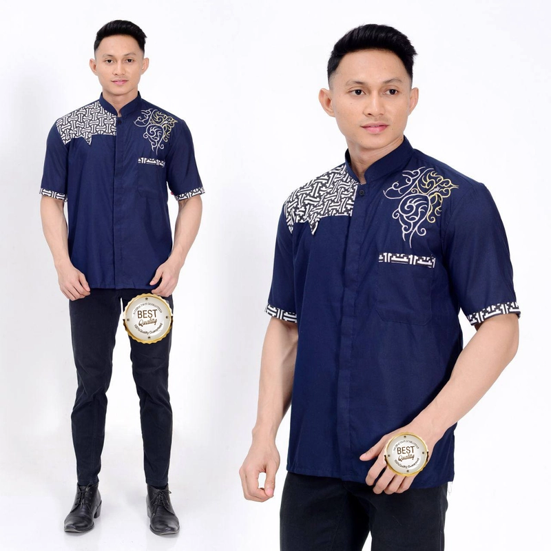 Kois Batik - Baju koko lengan pendek Terbaru koko kombinasi batik keren M Biru navy