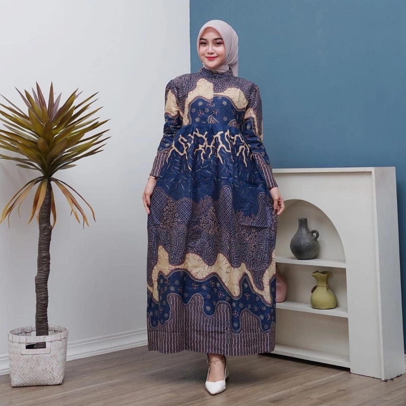 Batik Alfin - Gamis batik cantik gamis wanita muslim model kekinian terbaru gamis dewasa Allsize 120 Gamis wanita cantik navi