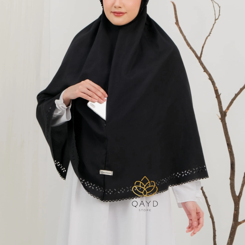 qaydstoreid - Beli 1 gratis 1 Bergo Haji Umroh Bersaku Katun Laser Premium bergo laser hitam